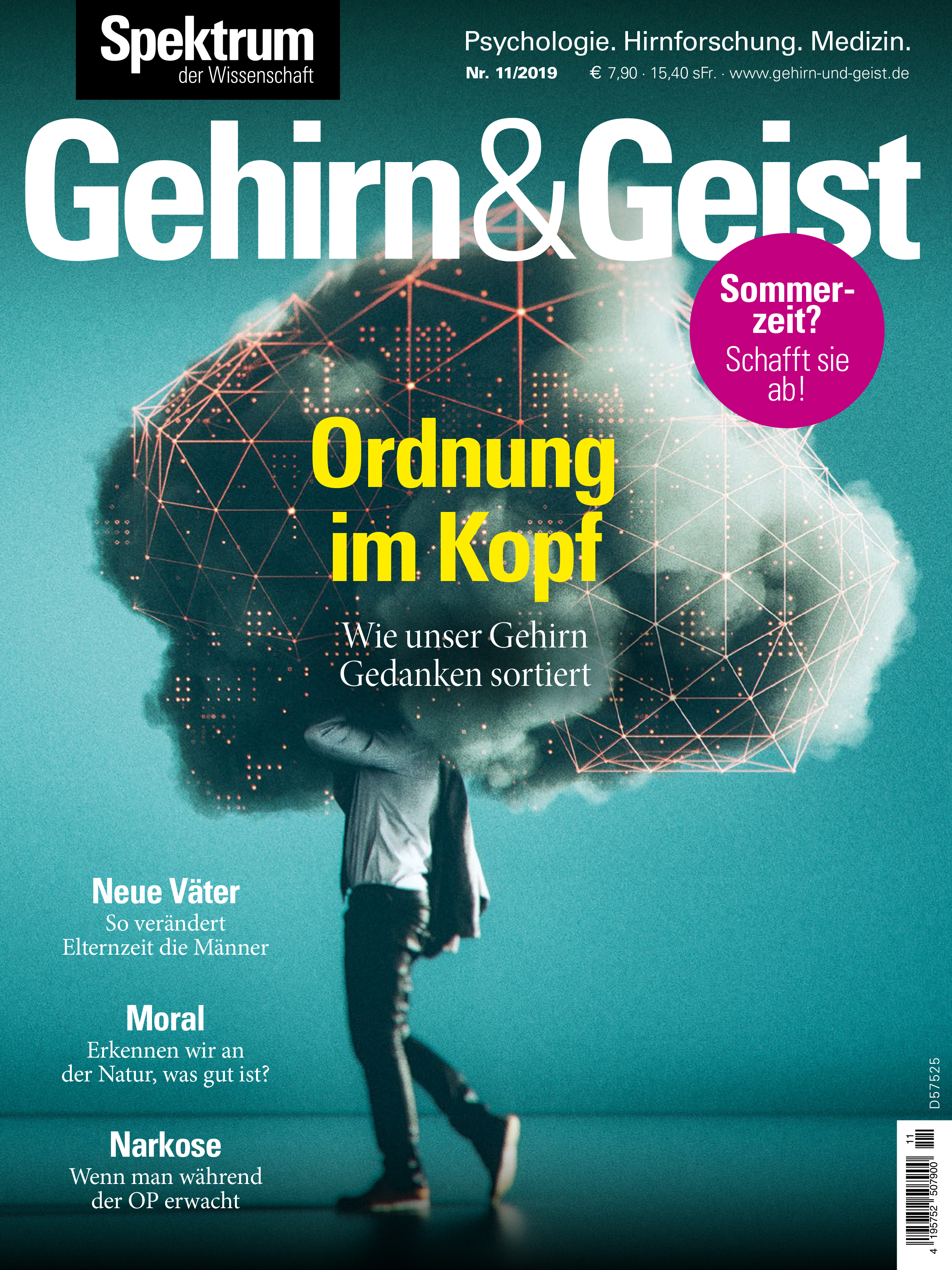 | In dieser Ausgabe beschäftigt sich Gehirn&Geist mit der Frage, wie das Gehirn Gedanken und Erinnerungen sortiert. Außerdem im Heft: So verändert die Elternzeit die Männer, Erkennen wir an der Natur, was gut ist? Wenn man während der OP erwacht | | | | Auszug aus dieser Ausgabe | | | Kognition Wie ordnet unser Gehirn Gedanken und Erinnerungen? Einer neuen Theorie zufolge nutzt es dabei den gleichen Mechanismus, der hinter unserem Orientierungssinn steckt. | | | Ethik Viele Menschen wollen aus bloßer Naturgegebenheit eine moralische Norm ableiten. Der englische Philosoph David Hume entlarvte diese Denkweise als falsch. | | | Individualität Persönlichkeitsanalyse per Smartphone: Unsere Gespräche und Freizeitaktivitäten verraten viel über uns selbst. | | | Tagträumen Tagträume können uns kreativ machen. Für manche Menschen werden die mentalen Auszeiten jedoch zum Problem. | | | Elternzeit Studien zeigen: Wenn der Vater eine Babypause macht, fördert das langfristig den Zusammenhalt in der Familie. | | | Neuroplastizität Bei früher Schädigung der linken Sprachzentren, können diese einfach in die rechte Hirnhälfte umziehen. Die erstaunliche Plastizität rettet Kinder davor, ihre Sprache zu verlieren. | | | Gute Frage Die meisten Menschen könne sich nicht selbst kitzeln, Dahinter steckt ein verblüffender Trick unseres Gehirns, das selbst erzeugte Sinnesreize aktiv unterdrückt. | | | Aufmerksamkeit Menschen sind erstaunlich schlecht im Multitasking – sie wissen es nur nicht. Dabei lässt sich Konzentration üben! | | | Infografik Manche Tiere verfügen über Sinneskanäle, von denen wir Menschen nur träumen können. Hier die exotischsten im Überblick. | | | Innere Uhr Die Zeitumstellung wird abgeschafft. Experten fordern die dauerhafte Winterzeit, da sie mehr unserem natürlichen Rhythmus entspricht. Die Sommerzeit mache uns hingegen krank. | | | Narkose Bei einem kleinen Teil der Patienten schlägt eine Anästhesie nicht richtig an - und sie erleben einen chirurgischen Eingriff unter Schmerzen mit. | | | Mikrobiom Der Darm und die dort angesiedelten Bakterien können eine Drogensucht beeinflussen. Das bietet womöglich Ansatzpunkte für neue Therapien. | | | Hirschhausens Hirnschmalz Humor ist, wenn man trotzdem lacht. | | | In dieser Ausgabe widmen wir uns Smart Homes, der Lichtverschmutzung und Experimenten. | Klimawandel und Klimaschutz sind in der täglichen Berichterstattung angekommen, auch außerhalb der ... | | | |